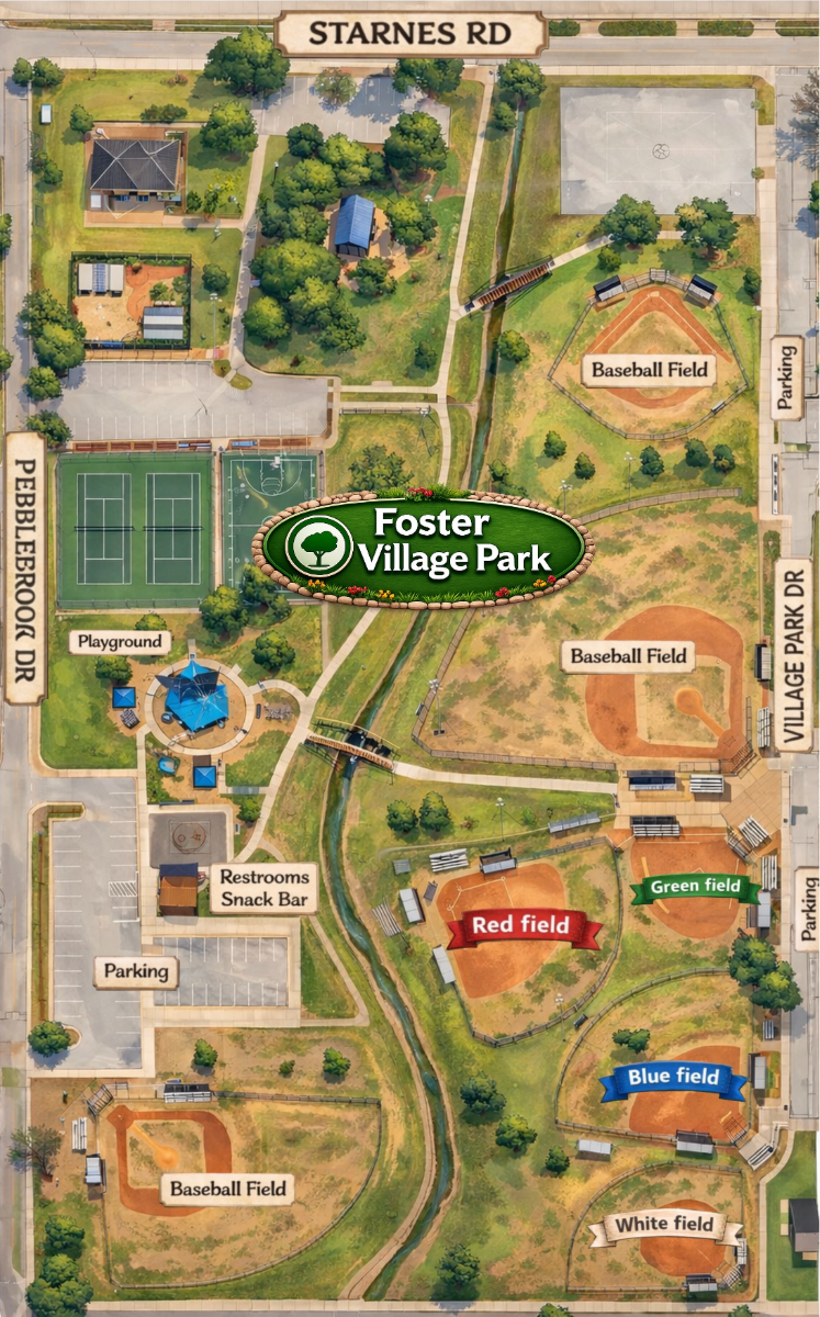 Games happen on Monday & Friday evenings and Saturday mornings at Foster Village Park.